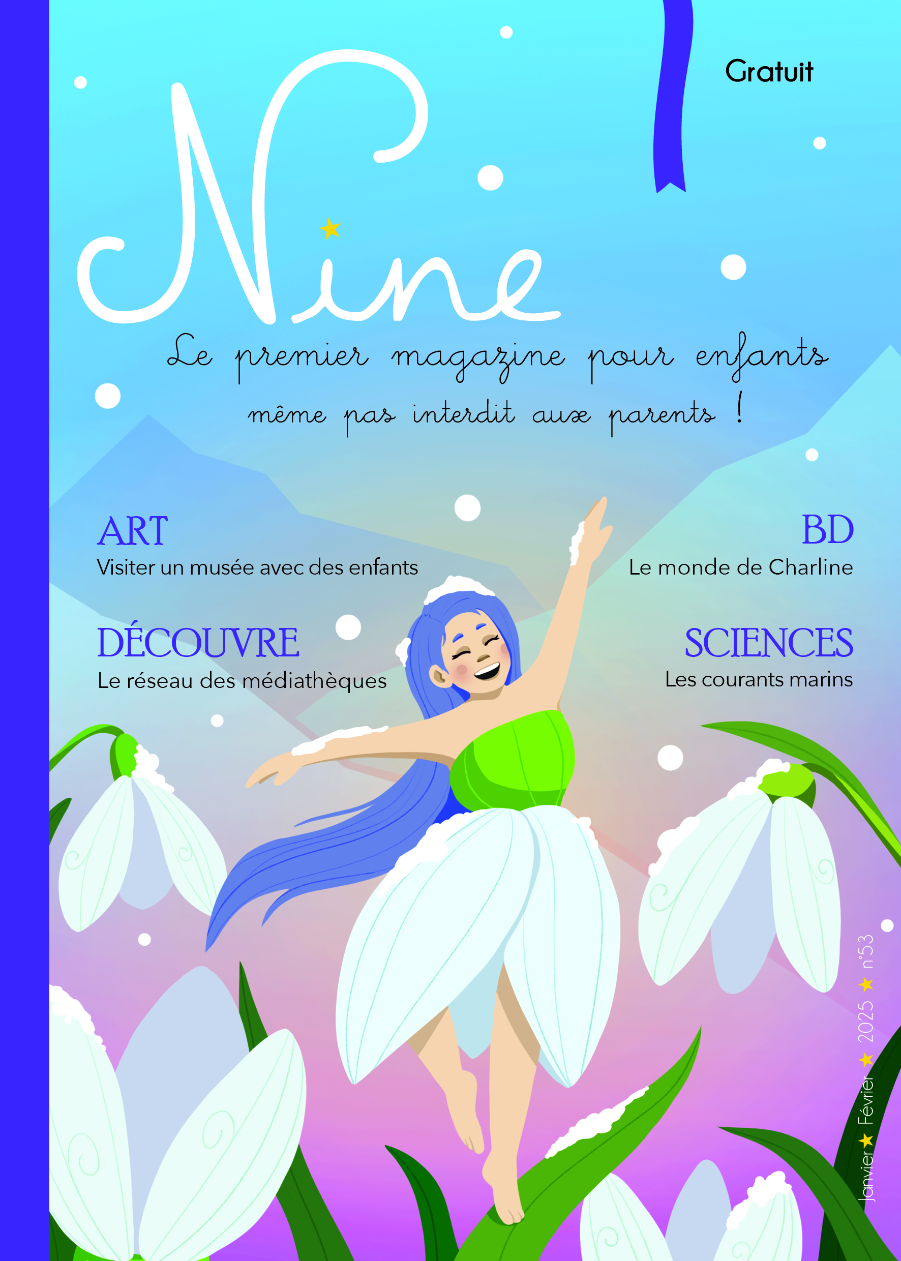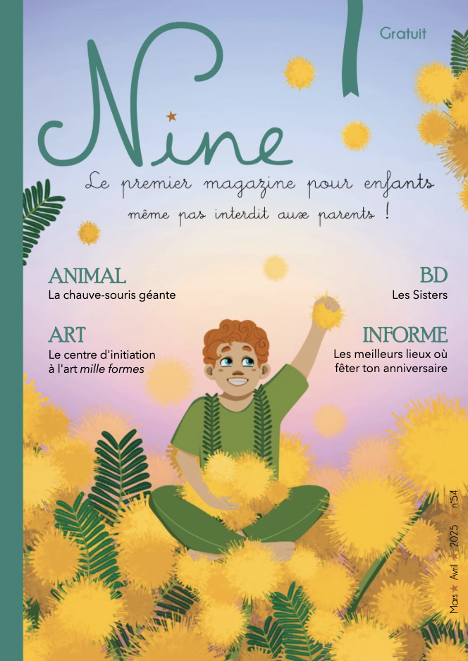 Nine est un magazine gratuit conçu par des enfants, pour des enfants. Il propose des rubriques pratiques et ludiques, centrées sur l’univers de l’enfance.