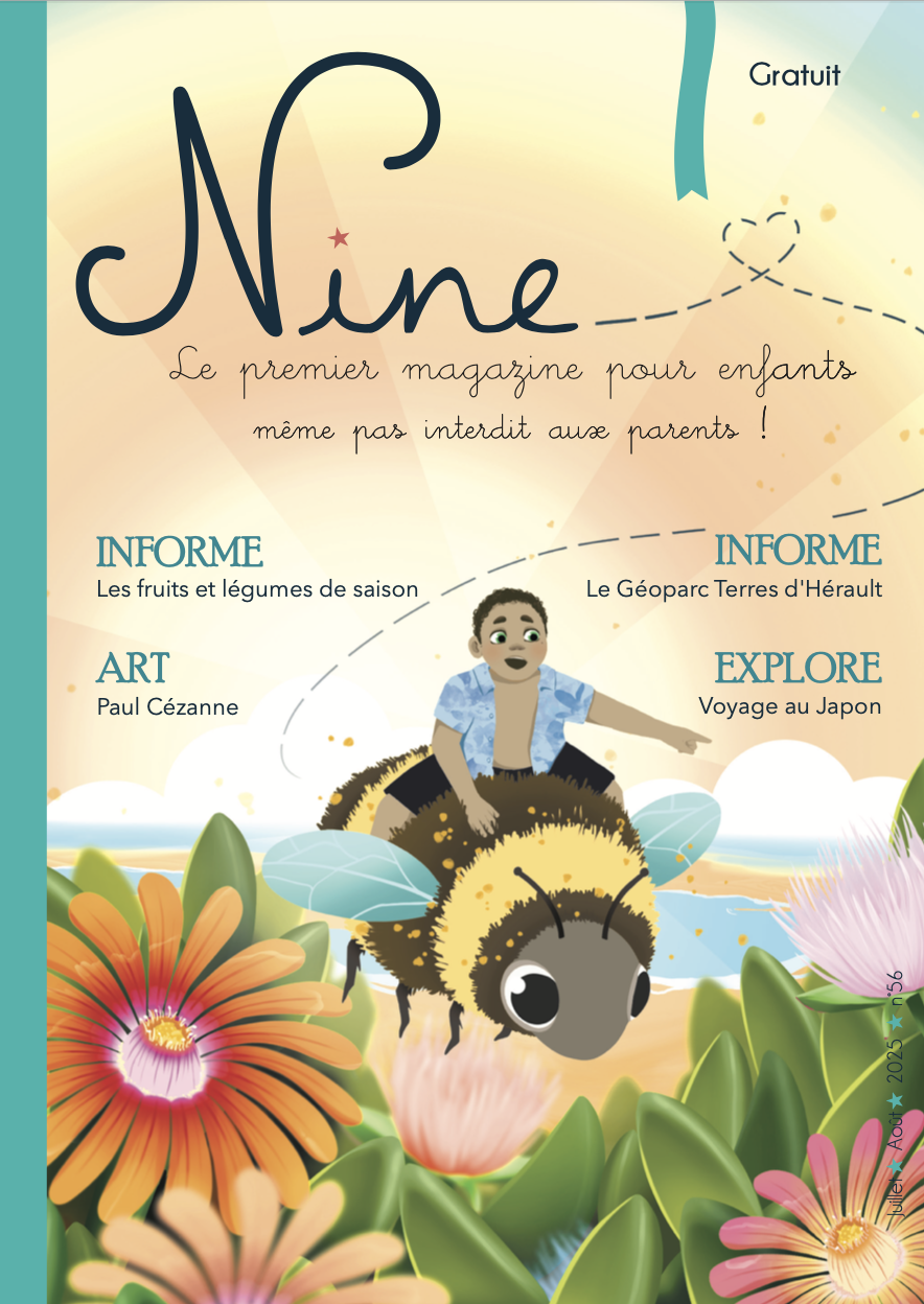 Nine est un magazine gratuit qui propose des contenus ludiques et éducatifs, centrés sur l’univers de l’enfance. À chaque numéro, les jeunes lecteurs découvrent des interviews exclusives, des explorations de métiers et d’activités, des voyages aux quatre coins du monde, ainsi que des recettes gourmandes à réaliser en famille.